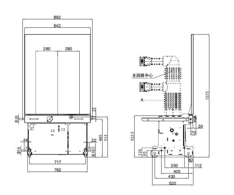 二次出線位置中間出線,左側出線