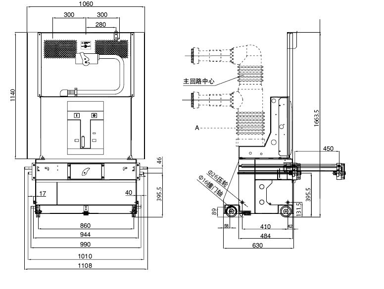 二次出線位置中間出線,左側出線