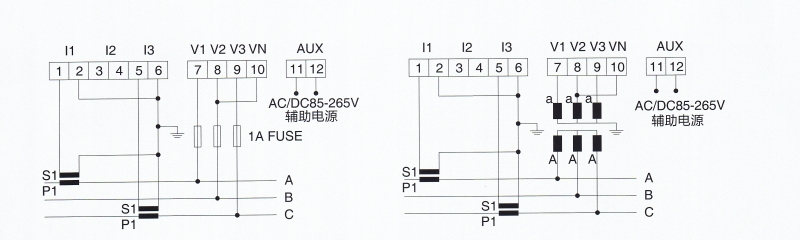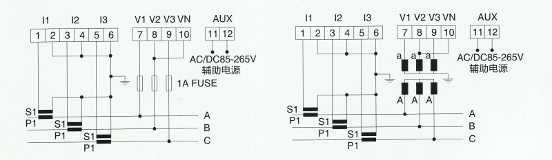 功耗電壓回路功耗< 1VA(每相), 電流回路功耗< 0.4VA(每相)