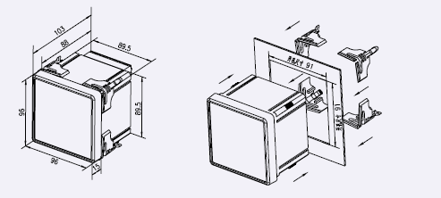 96方形外形及安裝尺寸圖