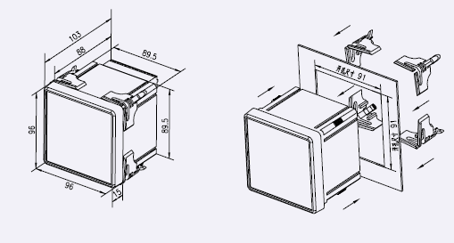 96方形外形及安裝尺寸圖