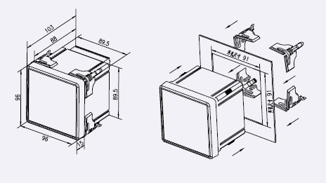 96方形外形及安裝尺寸圖