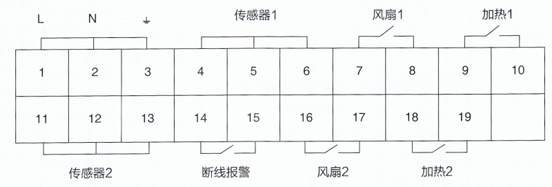 TH90智能型數(shù)顯溫濕度控制器以工業(yè)級單片機(jī)為控制核心,采用進(jìn)口數(shù)字溫濕度傳感器,測量精確度高,對工業(yè)現(xiàn)場的溫濕度進(jìn)行智能化監(jiān)控,并有溫濕度數(shù)字顯示和加熱、排風(fēng)指示。用戶還可以通過儀表面板上的按鍵對溫濕度控制的上、下限值進(jìn)行設(shè)定。儀表通過兩副常開觸點(diǎn)輸出,根據(jù)現(xiàn)場的應(yīng)用環(huán)境和用戶的設(shè)置自動(dòng)控制升降溫設(shè)備和除濕設(shè)備工作,以保護(hù)現(xiàn)場設(shè)備的運(yùn)行安全。該產(chǎn)品主要用于電力設(shè)備(如繼電器保護(hù)室外端子箱、高低壓控制柜、手車式開關(guān)柜、環(huán)網(wǎng)開關(guān)柜、地下變電站、箱式變電站、斷路器機(jī)構(gòu)箱、儀表箱等)以及其它需要自動(dòng)除濕、防凝露的場合,能夠有效防止因潮濕、結(jié)露而引起的各類事故,保障自動(dòng)化作業(yè)的高效、安全。接線方式